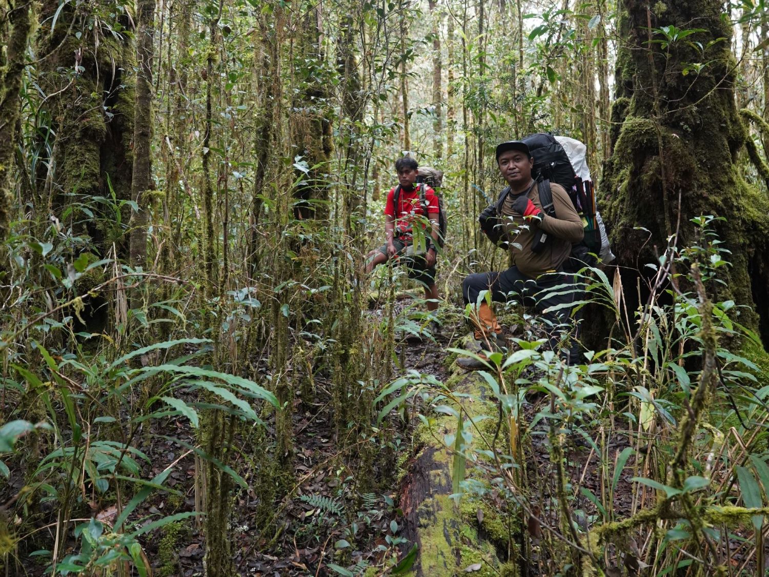 Kami menikmati jalur ini semaksimal mungkin. Landai, bahkan sesekali menurun. Setelah hari pertama yang keras, bagian ini seperti tangan yang menepuk pelan bahu kami, memberi ruang untuk bernapas lebih panjang. Langkah menjadi ringan tanpa harus dipaksakan.