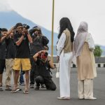 CELEBES IMAGES, Ternate – Sejumlah anggota komunitas fotografi memotret model saat hunting foto bareng di Kawasan Pusat Kuliner, Ternate, Maluku Utara, Minggu (1/3/2026). Kegiatan yang digelar oleh komunitas fotografer Ternate tersebut sebagai ajang silaturahmi antar anggota komunitas pecinta fotografi sambil menunggu waktu berbuka puasa (ngabuburit) sekaligus mempromosikan kawasan pusat kuliner melalui karya foto